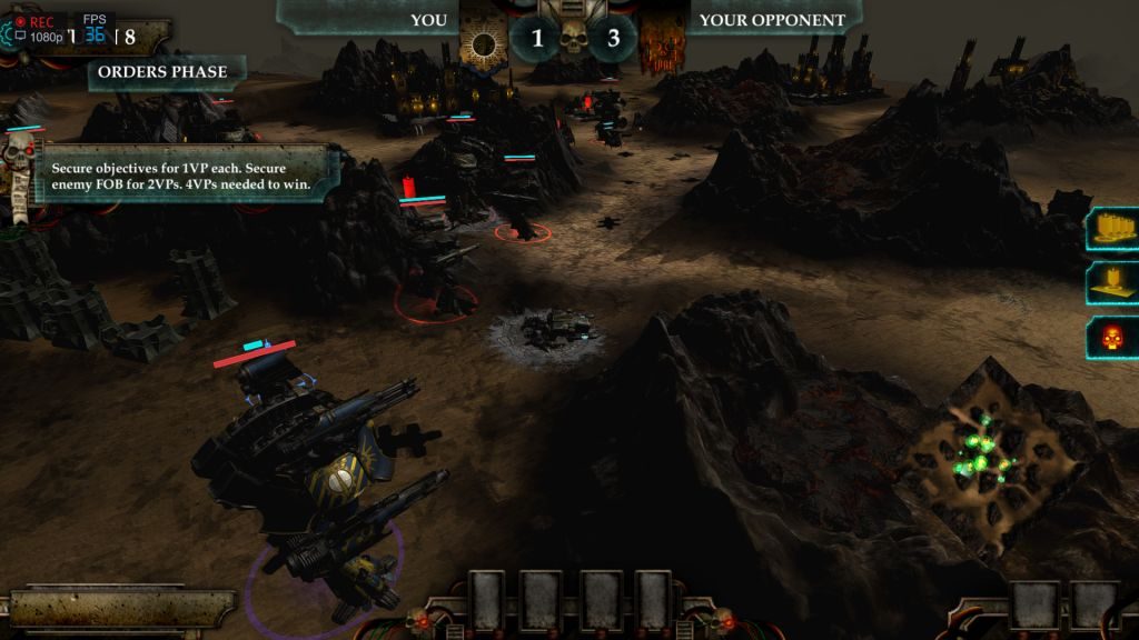 La partita, come già detto, si svolge a turni: un giocatore muove una sua unità con una delle tre differenti velocità disponibili e attacca un nemico in linea di tiro. Fatto questo, la mano passa all’avversario e poi a una nostra altra unità. Quando tutte le unità hanno mosso e attaccato, si passa al turno successivo.