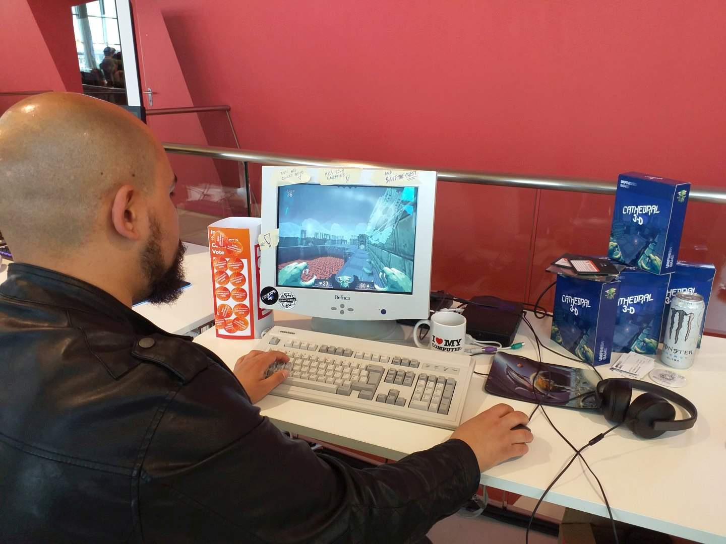 Mentre camminavamo per gli spazi del Digital Dragons 2019, il nostalgico di videogiochi per PC degli anni ’90 dentro di noi ci ha impedito di non-notare la postazione di Cathedral 3-D, caratterizzata dalle classiche periferiche di colore beige come tastiere PS2 e monitor a tubo catodico.