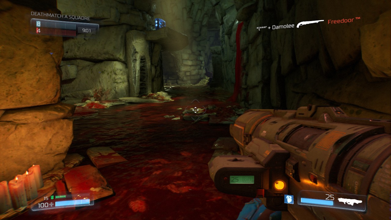 Se è vero che velocemente si può morire, è anche vero che la curva di apprendimento delle dinamiche di gioco del multiplayer di Doom risulta molto alta mettendoci in grado di padroneggiare le varie armi e gli oggetti in breve tempo. Con la progressione del nostro livello potremo personalizzare diversi aspetti del pre-partita creando set personalizzati di armi, la predisposizione degli hack da utilizzare, delle gesture (alcune davvero esilaranti) e la classica customizzazione delle skin di personaggio e armi. I moduli hack rappresentano una delle novità del titolo e si concretizzano in oggetti consumabili monouso che possono essere acquisiti progredendo nel gioco e utilizzabili a nostra scelta durante i vari match. Essi agevolano in diversi modi il giocatore, ad esempio possono segnalare il tempo di respawn degli oggetti sparsi per la mappa o dei power-up o, ancora, permettono di ottenere un incremento maggiore dell’esperienza derivante dalle varie uccisioni e così via.