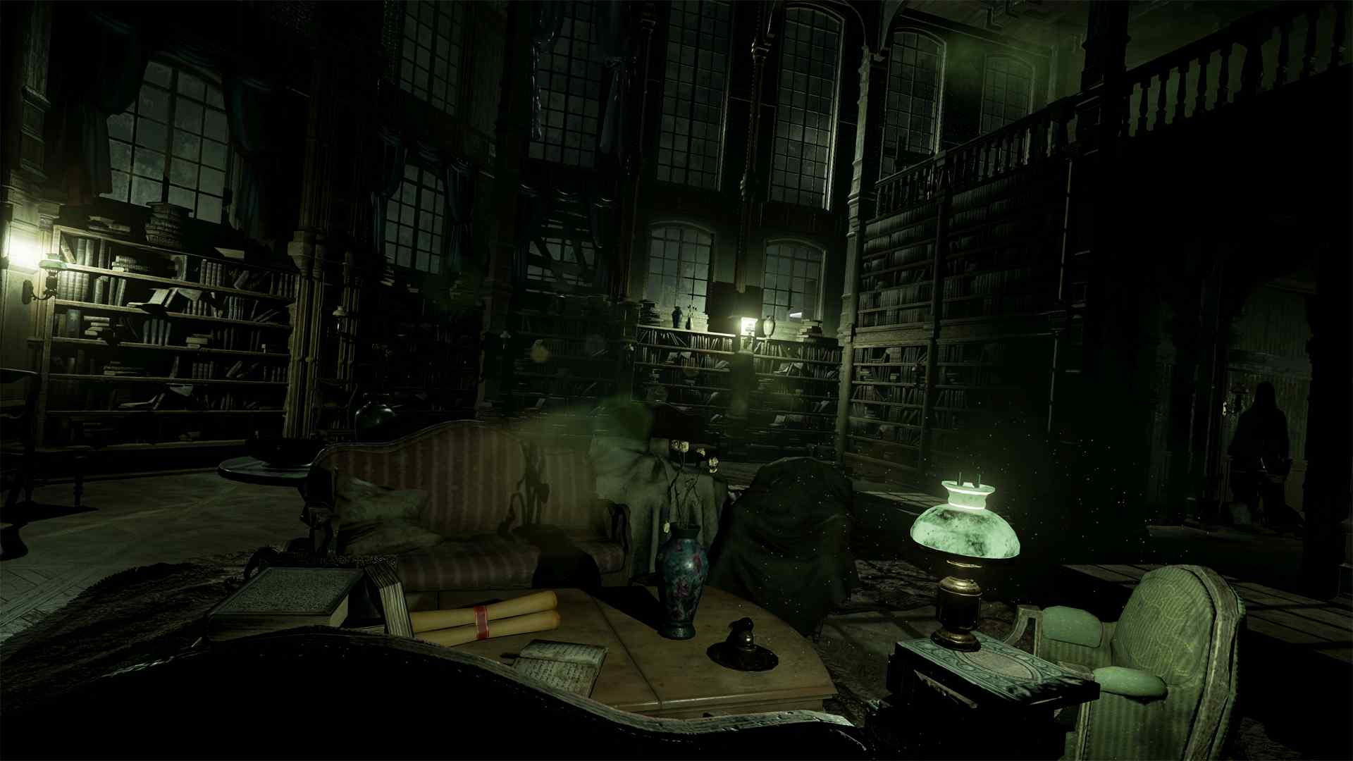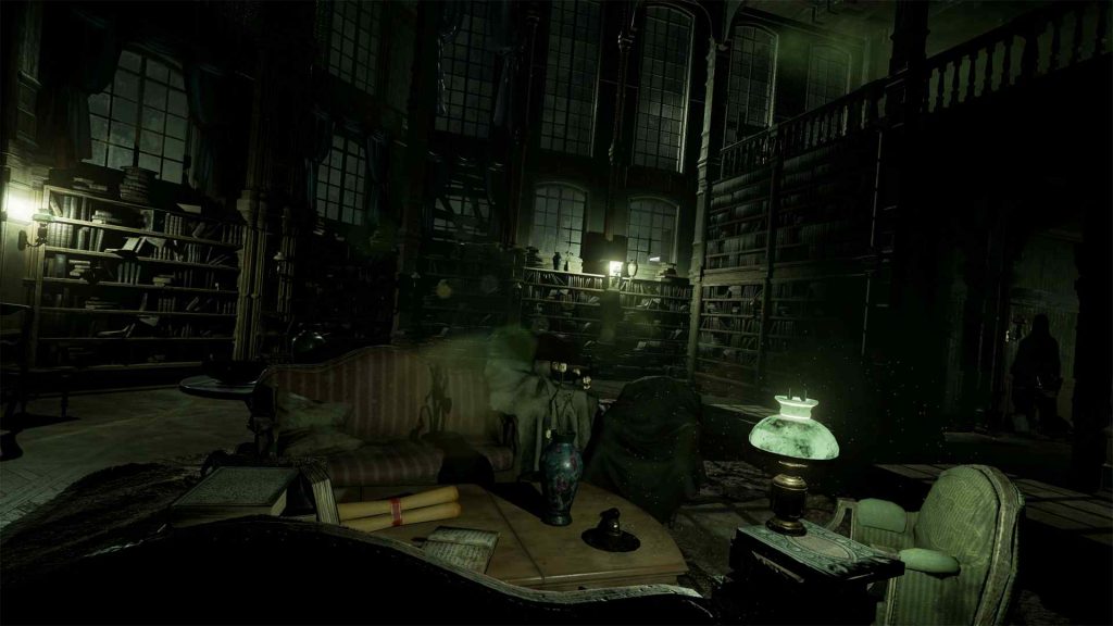 Una volta entrati nella stanza, la visione si oscura parzialmente per far capire al giocatore che è possibile entrare in fase investigativa – una sorta di flashback in cui l’esaminare oggetti e tracce permetterà di ricostruire i fatti. Gli sviluppatori ci fanno così scoprire che probabilmente non si tratta affatto di un incidente, in quanto ci sono segni di violenza e impronte di qualcuno fuggito dalla stanza. Tuttavia, questa ricostruzione potrebbe anche essere diversa o parziale: gli elementi RPG del gioco da tavolo sono presenti anche in questo gioco e, in base alle abilità e statistiche di Edward, alcune prove potrebbero fornire più o meno dettagli, o addirittura non essere viste affatto.