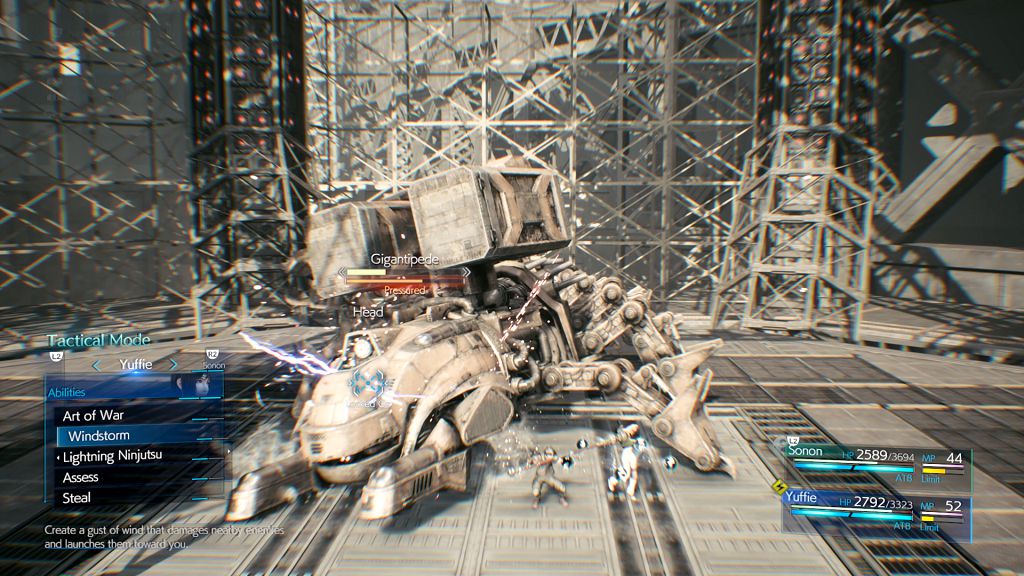 Nel corso della nostra anteprima abbiamo potuto vedere segmenti di gameplay che vanno dall’inizio del capitolo 1 del DLC fino alla prima bossfight, il Gigantipede. Il sistema di combattimento è ciò che ci ha sinceramente colpito di più. Per quanto anche la versione base di Final Fantasy VII Remake sia stata lodata per l’ottimo combat system, in Integrade assistiamo a un’evoluzione assolutamente pazzesca. Yuffie, a causa del suo ruolo di unico personaggio controllabile durante l’avventura, ha delle meccaniche che potenzialmente aumenteranno esponenzialmente le possibilità dei giocatori in battaglia e non vediamo l’ora di provarla con mano.