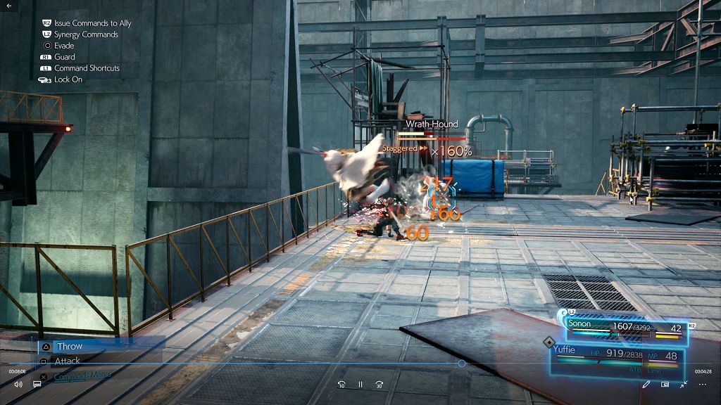 Per poter utilizzare le tecniche sinergiche servirà però che sia Yuffie che Sonon abbiano l’ATB carica, ciò ovviamente mette sull’IA del guerriero un peso non indifferente. Uno dei principali difetti del sistema di combattimento di Final Fantasy VII Remake è proprio il fatto che i compagni non controllati direttamente dal giocatore spesso si chiudono troppo sulla difensiva, senza caricare l’ATB, caratteristica che speriamo vedere migliorata in Intergrade. Nel gameplay che abbiamo osservato Sonon si è comportato più che bene, tuttavia il vero stress test avverrà durante la futura recensione. Bisogna anche sottolineare come il nuovo personaggio, pur non essendo controllabile, abbia una propria Limit Break “Danza del Dragone”.