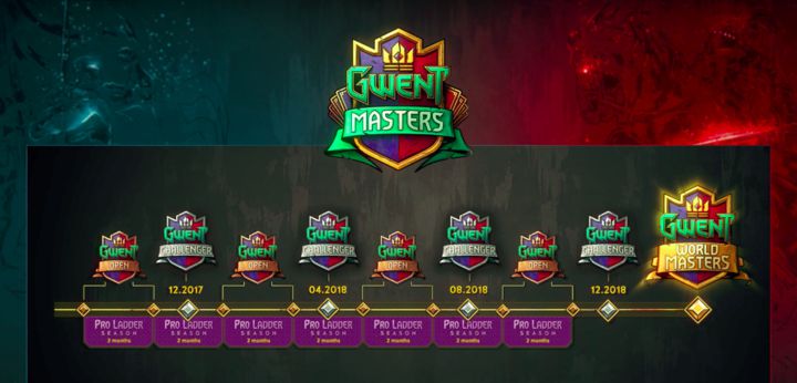 Ogni stagione di Gwent Masters series, della durata di oltre anno, prevederà 8 competizioni di Gwent Open, il tier entry level del torneo ufficiale. Al termine di ogni stagione – che ricordiamo sarà della durata di due mesi – i primi otto classificati in Pro Ladder si giocheranno un montepremi di 25’000 dollari nel Gwent Open. Ogni due stagioni di Gwent Open si terrà poi una stagione, sempre della durata di due mesi, di Gwent Challenge, il secondo tier del meta competitivo. Anche in questo caso saranno otto i partecipanti che potranno prendere parte alla stagione di Challenge: il vincitore della Challenge season precedente, fino a quattro finalisti delle due stagioni di Open precedenti quella di Challenge, fino a tre giocatori col più alto numero di crown points e due Wild Cards invitate direttamente da CD Projekt Red. Per ognuna della quattro competizioni di Challenge che avranno corso durante l’anno, il montepremi sarà di 100’000 dollari, in aggiunta al titolo di Challenge Winner e all’anello a comprovarne lo status.