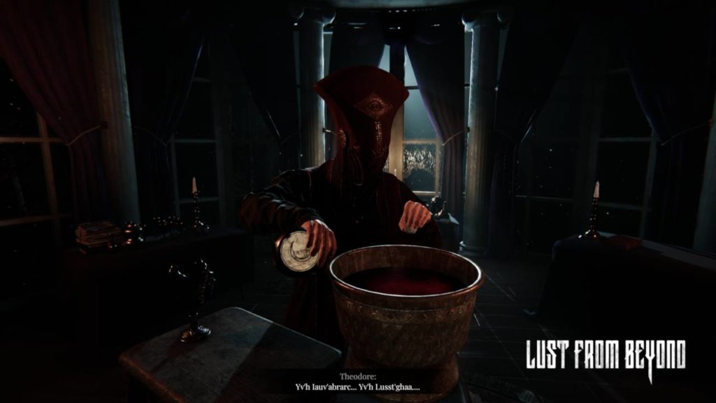 Definito dagli sviluppatori stessi come “psychological erotic horror“, Lust From Beyond è il risultato di un baccanale (parola non scelta a caso) tra il gameplay di Amnesia, le arti visive Giger, Croneberg e Beksinski, e le narrazioni di Kubrick, Lovecraft e Clive Barker. In questo gioco, ambientato in una villa vittoriana, il protagonista fa parte di un culto segreto edonista – un po’ come Eyes Wide Shut. Ma se il film di Kubrick si “limitava” alla lussuria carnale, il culto di Lust From Beyond va alla ricerca del piacere oltre la realtà terrena con la convinzione che esista una dimensione colma di piaceri proibiti e illimitati. L’impronta visiva è fortemente sessuale, con forme falliche o vaginali pressoché ovunque e scene di sesso anche esplicite – tanto è vero che, prima di avviare il gioco, viene chiesto al giocatore se desidera giocare con grafica censurata.