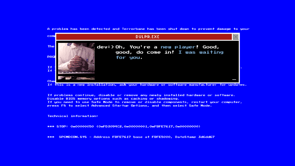 Terrorbane è un’avventura grafica con tematiche parodistiche realizzata nello stile di quel che potrebbe sembrare – almeno al primo impatto – un gioco di ruolo realizzato con RPG Maker. La sua peculiarità, tuttavia, non è il genere del gioco stesso: Terrorbane infatti si basa sull’idea di rompere la quarta parete, e ci riesce già dal primo momento in cui si avvia il gioco. Non a caso il primo personaggio a comparire sullo schermo è lo sviluppatore di Terrorbane stesso, che dopo aver dettato il suo progetto come il miglior videogioco realizzato sino ad oggi indirizzerà noi, che faremo da tester, a provare e portar a termine il titolo in questione.