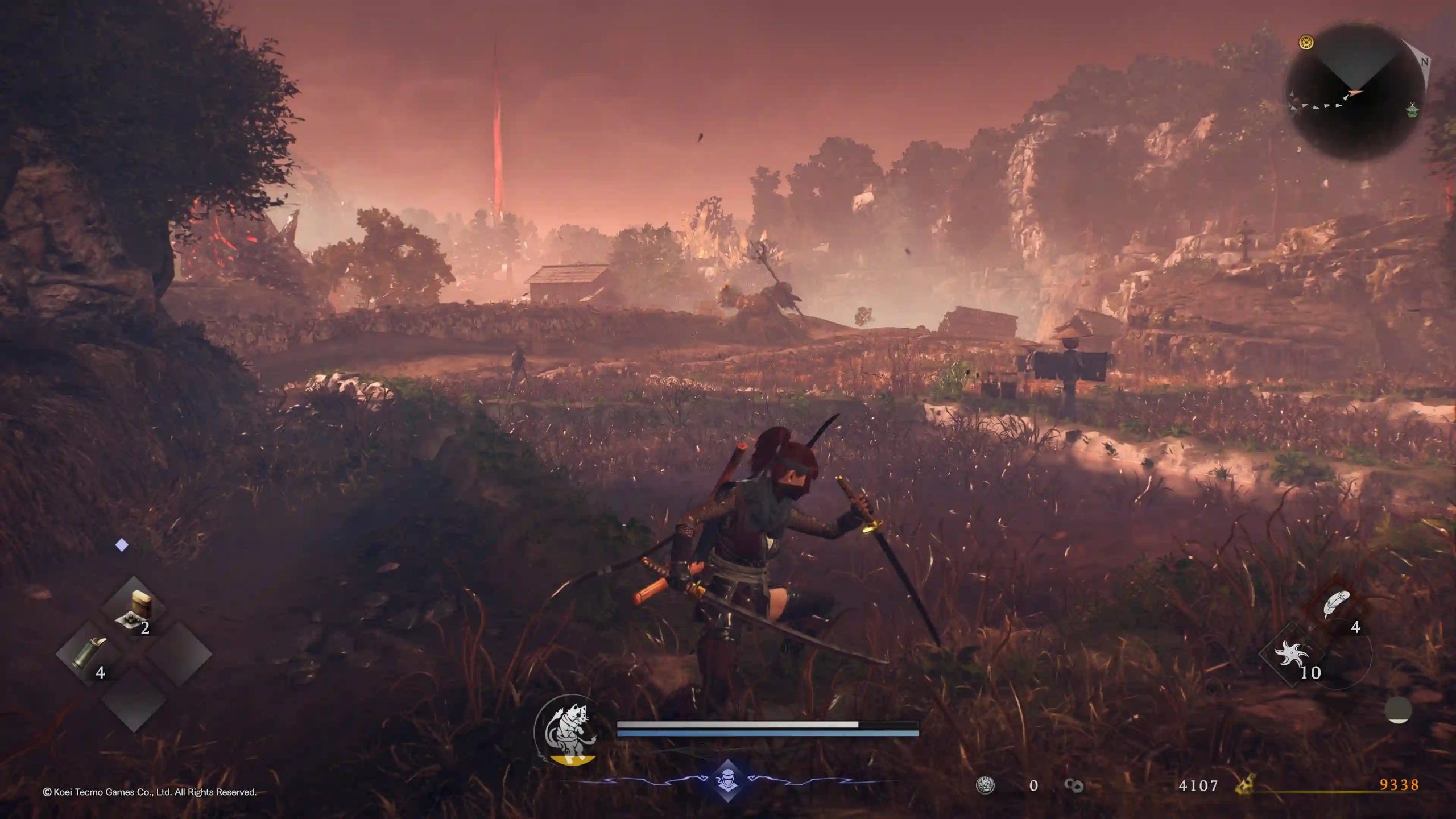 Ma soprattutto viene introdotta una nuova dimensione al combattimento. Premendo R2 ci si trasforma da Samurai a Ninja. Il primo ha il moveset di Nioh con le tre stance caratteristiche della serie, il secondo invece è molto più veloce ma scambia le stance di combattimento con un nuovo approccio alle meccaniche “magiche” della serie.