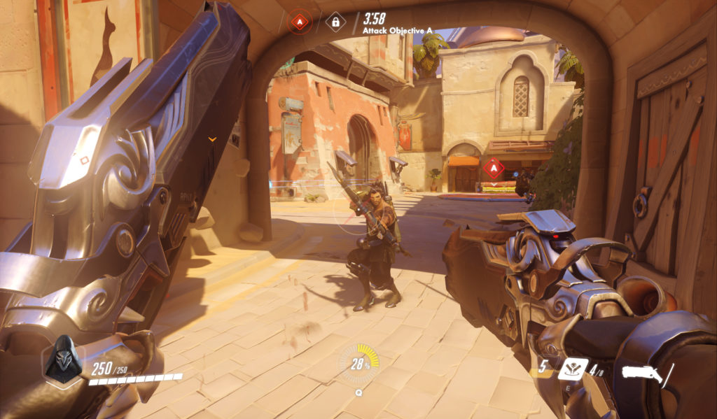 Una volta iniziata la partita ci troviamo difronte a uno scenario familiare: mappe abbastanza grandi, ricche di strade e shortcut studiati ad arte per favorire chi ha “studiato”. La conoscenza del battlefield è fondamentale per occupare e tenere occupati determinati spot vantaggiosi (per visibilità, per posizione, ecc) e sapere le stradine da prendere per arrivare alle spalle degli avversari può fare la differenza. In questo senso Overwatch è da apprezzare: sprona al lavoro di squadra e alla collaborazione. Non solo al momento della scelta del personaggio bisogna fare attenzione ai pick dei compagni per comporre un team equilibrato, ma una volta in partita è consigliabile comunicare e coordinarsi.