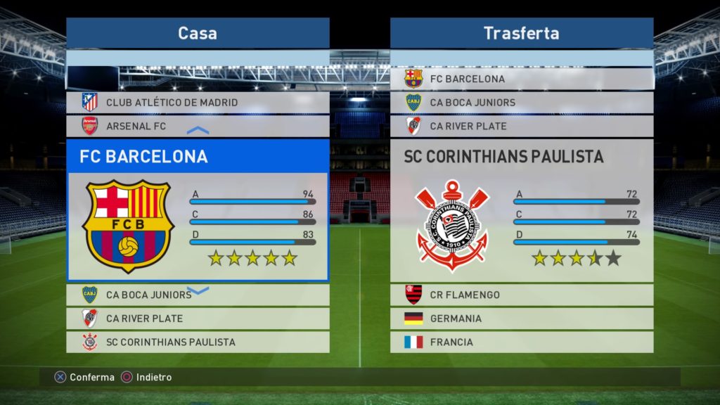 La Demo di Pro Evolution Soccer 2017 permetterà di giocare con 9 squadre di cui due nazionali (Germania e Francia) e sette squadre di club (Atletico Madrid, Arsenal, Barcelona, Boca Juniors, River Plate, Corinthians e Flamengo). Sono presenti inoltre due stadi, il celebre e ricreato alla perfezione Camp Nou, e uno stadio generico rinominato Neu Sonne Arena. L’unica cosa che sarà possibile provare nella Demo è una semplice partita d’esibizione contro la CPU o in locale, della quale si potranno impostare le condizioni meteorologiche e altri parametri come la durata, la divisa e la velocità del gioco. Dal punto di vista dei contenuti è una versione molto povera, che non ci consente di provare con mano la Master League, modalità regina di PES che però nella scorsa edizione ha sofferto di qualche problema. Non sarebbe stata quindi una cattiva idea comprendere anche un piccolo assaggio della modalità.