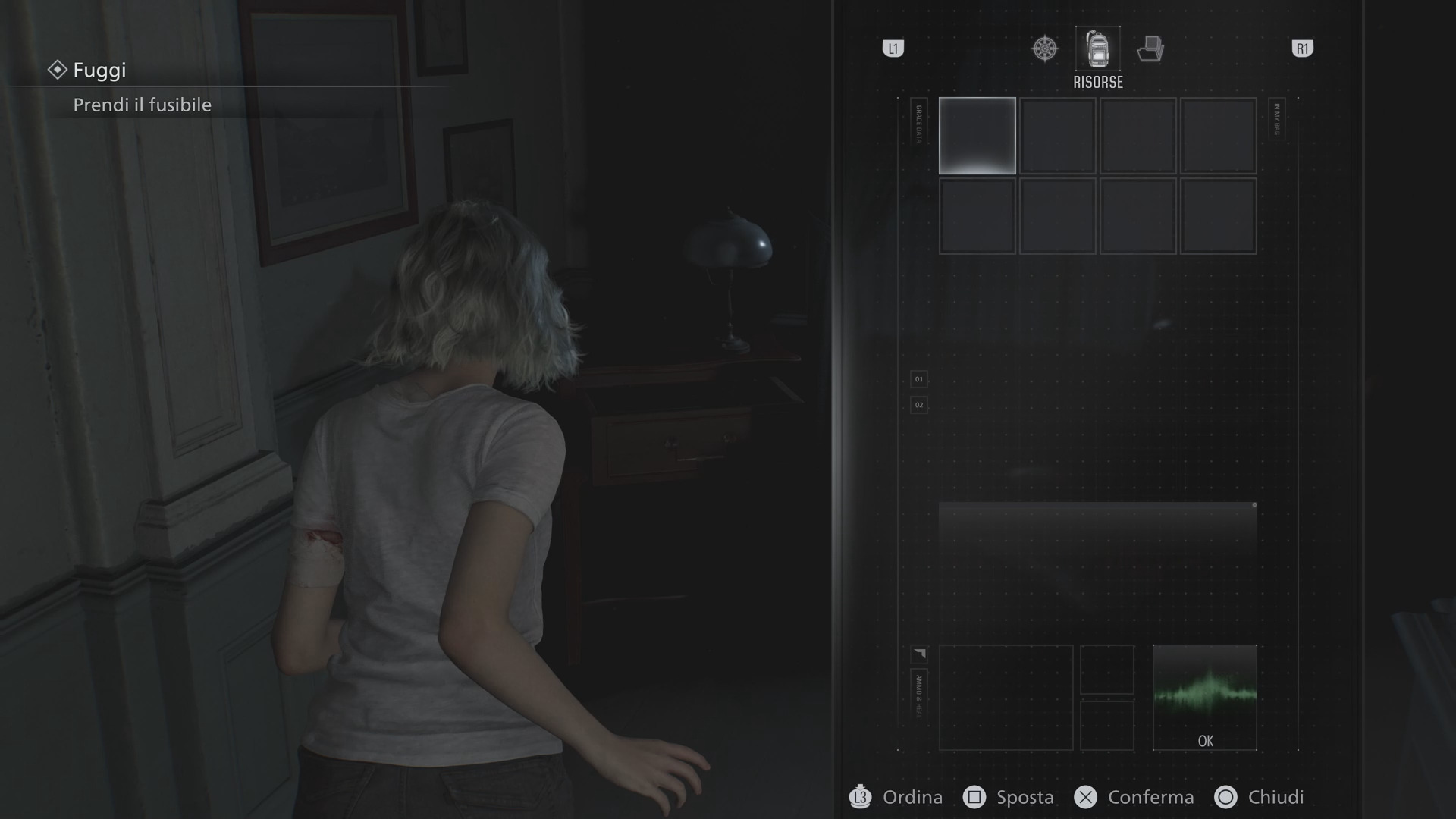 Questa seconda run mi ha dato la possibilità di vivere il prologo con la già citata visuale in terza persona, e da qui sono emersi due dettagli interessanti, uno positivo e l’altro meno. Il lato positivo è che la terza persona permette di assistere a momenti che in soggettiva non si percepiscono, come le reazioni fisiche di Grace nei momenti di panico durante le fughe dalla creatura. La nostra eroina corre affannata, inciampa, striscia, aumentando il senso di vulnerabilità e coinvolgendo emotivamente il giocatore. L’aspetto negativo, però, è che alcune animazioni non sono affatto riuscite, soprattutto quelle durante la corsa. Sembrano posticce e raffazzonate, più o meno allo stesso livello di quelle viste in Resident Evil Village. Dopo tutto questo tempo, forse, da Capcom era lecito aspettarsi qualcosa di meglio. Tuttavia, per chi mal tollera la visuale in prima persona, resta comunque un’opzione molto gradita. Va anche detto che è possibile cambiarla dal menu in qualsiasi momento.