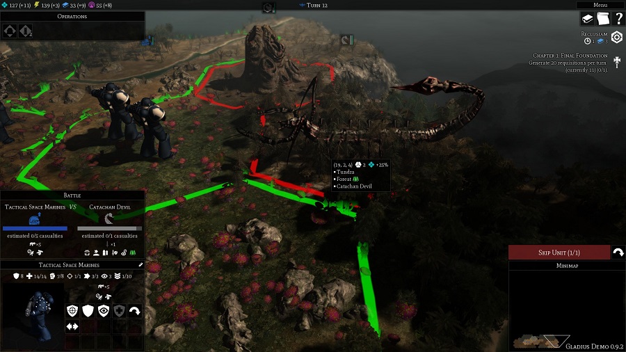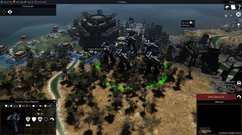 Warhammer 40000 Gladius: Relics of War, come abbiamo già detto, è un gioco di strategia e conquista a turni con un intero mondo, suddiviso in caselle esagonali, da esplorare e conquistare. Lo stile di gioco potrebbe ricordare, a grandi linee, classici del genere quali Civilization.