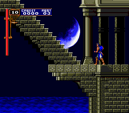 Azione e sistema di controllo non si discostano molto da quelli offerti nei predecessori: anche Rondo of Blood è un platform/action bidimensionale a scorrimento orizzontale, caratterizzato dalla preponderanza dei combattimenti rispetto al platforming. Richter è armato principalmente di una frusta, come molti altri suoi parenti, cui si aggiungono item classici come pugnali, acquasanta, ecc., che consumano cuori. E’ stato introdotto l’Item Crash (che tornerà in altri capitoli), potente mossa ad ampio raggio legata allo strumento equipaggiato, che consuma un cospicuo quantitativo di cuori. Il livello di difficoltà è elevato, ma non eccessivo nell’ambito della serie. In una prospettiva moderna, ci sono molti elementi a cui ci stiamo disabituando, come le vite: nel panorama attuale, in cui i tentativi a disposizione spesso sono infiniti, è dura superare livelli e boss complicati con solo tre vite (di default). Il game over comporta la necessità di ricominciare lo stage dall’inizio, visto che i check-point (all’inizio di ogni “stanza”) valgono solo fino all’esaurimento delle vite.