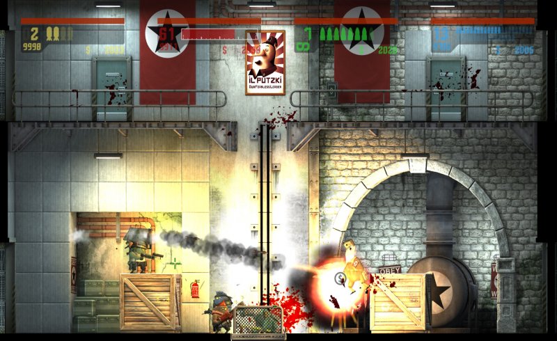 Un action con venature platform, un platform con sfumature action, definitelo come volete, ma Rocketbirds 2: Evolution è divertente, massiccio e cazzuto. Dotato di un plot che, un po’ come quello del prequel, strizza l’occhio alle prosopopee cinematografiche guerrafondaie degli anni ‘80, ritraendo il pollo Hardboiled alle prese con i terribili pinguini killer e l’ombra del temibile dittatore Putzki, Rocketbirds 2: Evolution si intreccia a doppio filo con riflessioni e considerazioni sociopolitiche incredibilmente tangibili, sebbene instillate in un contesto volutamente parodistico ed esagerato. E non è demagogia quella di Ratloop, nossignore, ma una presa di posizione netta, distinta e distintiva, lontana da ogni tipo di relativismo e vicina a una dichiarazione d’intenti che, paradossalmente, profuma di pacifismo. La guerra fa schifo, d’altronde, una sensazione avallata anche da una colonna sonora prepotentemente strong, drappeggiata di sonorità forti e tambureggianti, violentemente orchestrata da New World Revolution.