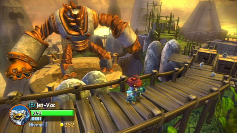 Per il resto, possiamo dire che il motto è stato “squadra che vince non si cambia”: la formula che sorregge il gameplay è la stessa dell’episodio precedente, una sorta di action adventure che è anche un po’ RPG hack ‘n’ slash. Sarebbe circa la struttura di un platform con una certa enfasi sui combattimenti, ma riesce difficile parlare propriamente di un gioco di piattaforme, non essendo contemplato il salto. Tutto, ovviamente, è all’acqua di rose: le aree segrete sono abbastanza evidenti, i puzzle sono molto semplici e la sfida non è certo impossibile, dimostrandosi il gioco scorrevole anche al livello di difficoltà più elevato. Gli elementi ruolistici di Skylanders: Giants si riducono alla presenza di livelli e statistiche, di abilità potenziabili e di un equipaggiamento (il cappello). I combattimenti si affidano a un sistema di controllo elementare, che non prevede schivate, counter o combo. Si utilizza uno Skylander per volta, dotato di proprie statistiche, caratteristiche elementali, equipaggiamento e così via. È possibile in ogni momento cambiare personaggio: basterà rimuovere la statuina dal portale e posizionarne un’altra. Ecco, forse queste transizioni avrebbero potuto essere più rapide…