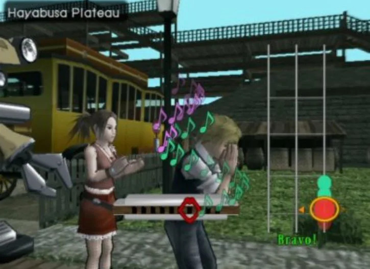 La fanciulla è la voce del complesso musicale più famoso del paese e ben presto Vanilla si scopre musicista: apriamo dunque una parentesi sulla componente rhythm-game di Steambot Chronicles. Molti sono gli strumenti da comprare e ciascuno presenta delle varianti nelle meccaniche dell’esecuzione, pur risultando esse, per forza di cose, semplicistiche rispetto a giochi propriamente musicali. Vanilla potrà suonare in due occasioni: o con il gruppo in momenti specifici della trama, con la possibilità di scegliere chi suona quale strumento, oppure solista lungo le strade per ottenere denaro dai passanti, in perfetto stile da artista di strada; in questo caso, oltre alla precisione nell’esecuzione, per racimolare un gruzzoletto sarà necessario scegliere un punto in cui transiti un buon numero di persone. I brani, piuttosto simili tra loro nello stile (d’altronde sono dello stesso gruppo), sono abbastanza pochi, e, per averli tutti, sarà necessario completare alcune subquest.