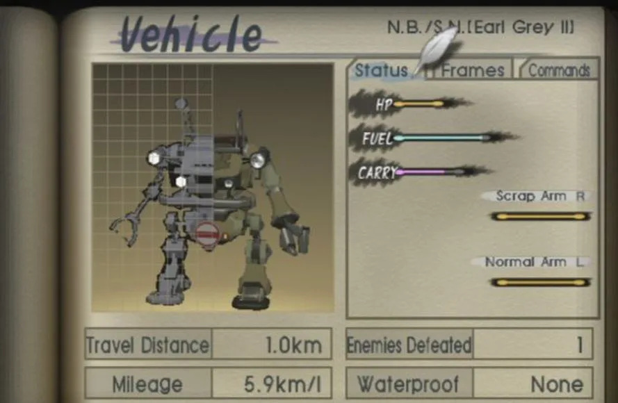 La personalizzazione del mezzo è fondamentale, non solo per gli scontri, ma anche per altri incarichi: per trasportare oggetti avrete bisogno di un portapacchi, ad esempio. Le parti sostituibili sono abbastanza numerose: braccio destro, braccio sinistro, gambe e corpo sono le principali, ma ci sono anche altre possibilità, come cambiare colore. Essenzialmente, modificando le braccia si agisce sulle capacità di attacco e di difesa, mentre gambe e corpo influenzano la mobilità nei diversi ambienti (terra, sabbia, acqua ecc.). Dal momento che c’è un limite massimo di peso e ogni pezzo ne ha uno specifico, è necessario assemblare con attenzione il proprio mezzo, tenendo conto che una massa maggiore equivale a un’aumentata resistenza a discapito dell’autonomia di carburante e della velocità. Una messa a punto ottimale si rende utilissima in caso si decida di affrontare gli immancabili combattimenti delle arene.