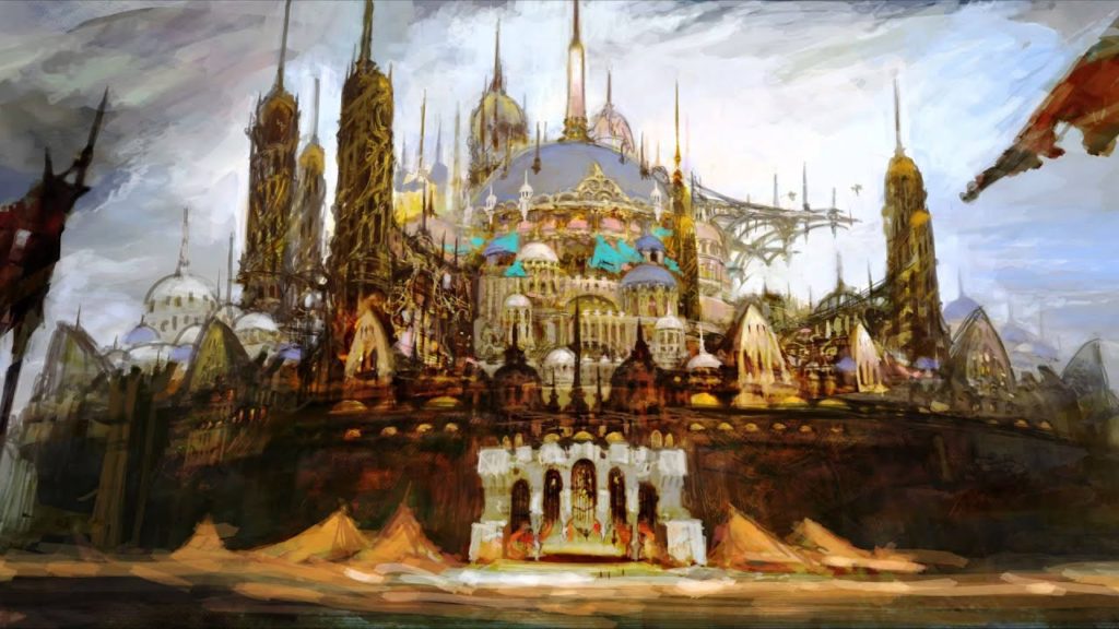 Queste potenti divinità verranno poi catturate dall’impero di Allagan e affrontate migliaia di anni dopo dai Warrior of Light, si tratta dei primal “The Warring Triad” e “Bahamut”. Thavnair è una terra di pirati, reputata il paradiso da questi ultimi.Su Aersland l’unica informazione tangibile è che questo continente è casa della razza giocabile Roegadyn. Passiamo quindi a discutere i due maggiori continenti di gioco: Eorzea e il lontano Est. Eorzea è la terra principale di Final Fantasy XIV, introdotta ancora ai tempi della 1.0. Questo continente è stato devastato dalle mira dell’impero di Garlemand, nato nella zona NordEst del continente, che ha cercato di conquistare l’intero territorio, arrivando persino a causare la calamità che ha posto fine ad un’era, la discesa di Dalamud, di cui abbiamo discusso nel precedente episodio di Eorzea: our Final Fantasy. Per impedire l’avanzata dell’impero gli stati fondati nel continente si unirono nell’Alleanza Eorzeana ( The Eorzean Alliance, in inglese). Gli stati facenti parte dell’alleanza sono: Ul’dah, Limsa Lominsa e Gridania, ai quali si uniscono poi lo stato sacro di Ishgard e la città-stato di Ala Mhigo, dopo gli eventi di rispettivamente Heavensward e Stormblood.