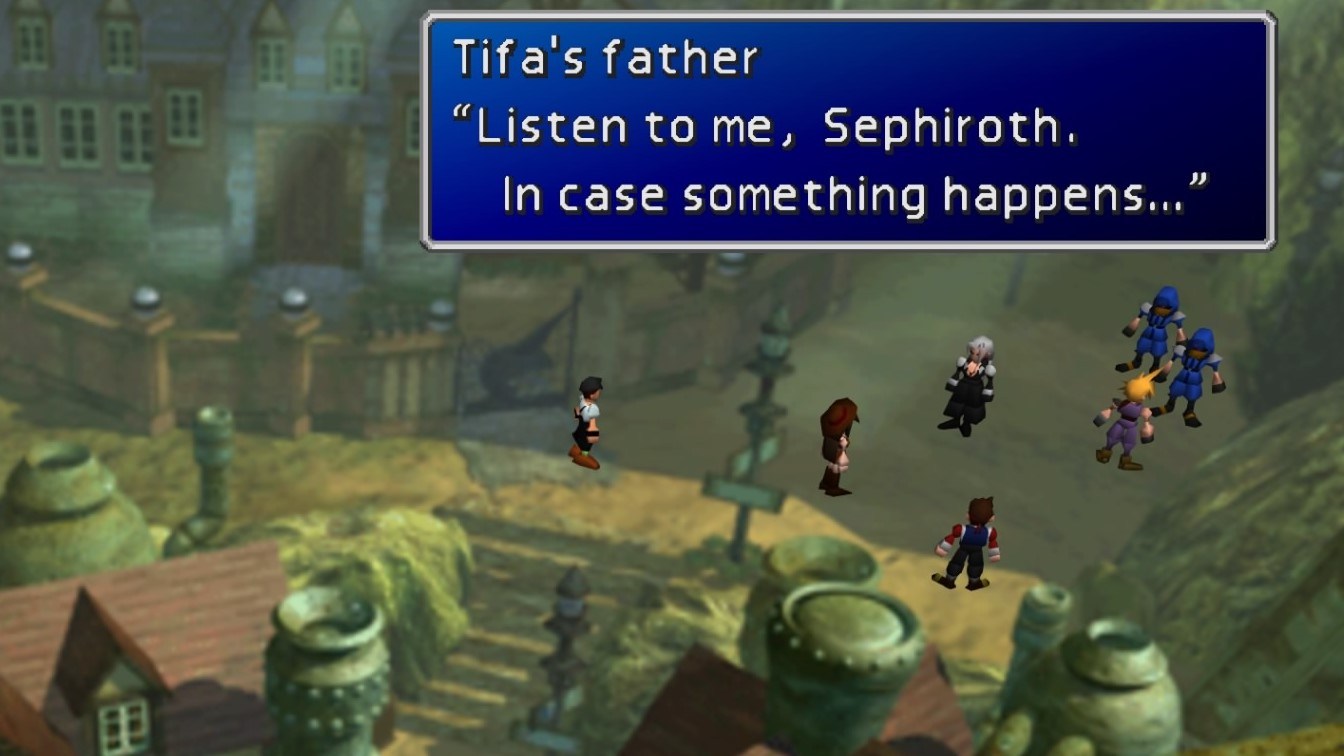È una sequenza del tutto priva di azione, ma che ha il grande pregio narrativo di far luce su quanto è successo a Nibelheim, districando finalmente i dubbi su chi e cosa sia davvero Cloud, il suo rapporto con Tifa e Sephiroth, ma anche e soprattutto i suoi sentimenti e le sue debolezze che lo rendono uno dei protagonisti più umani e complessi della saga.