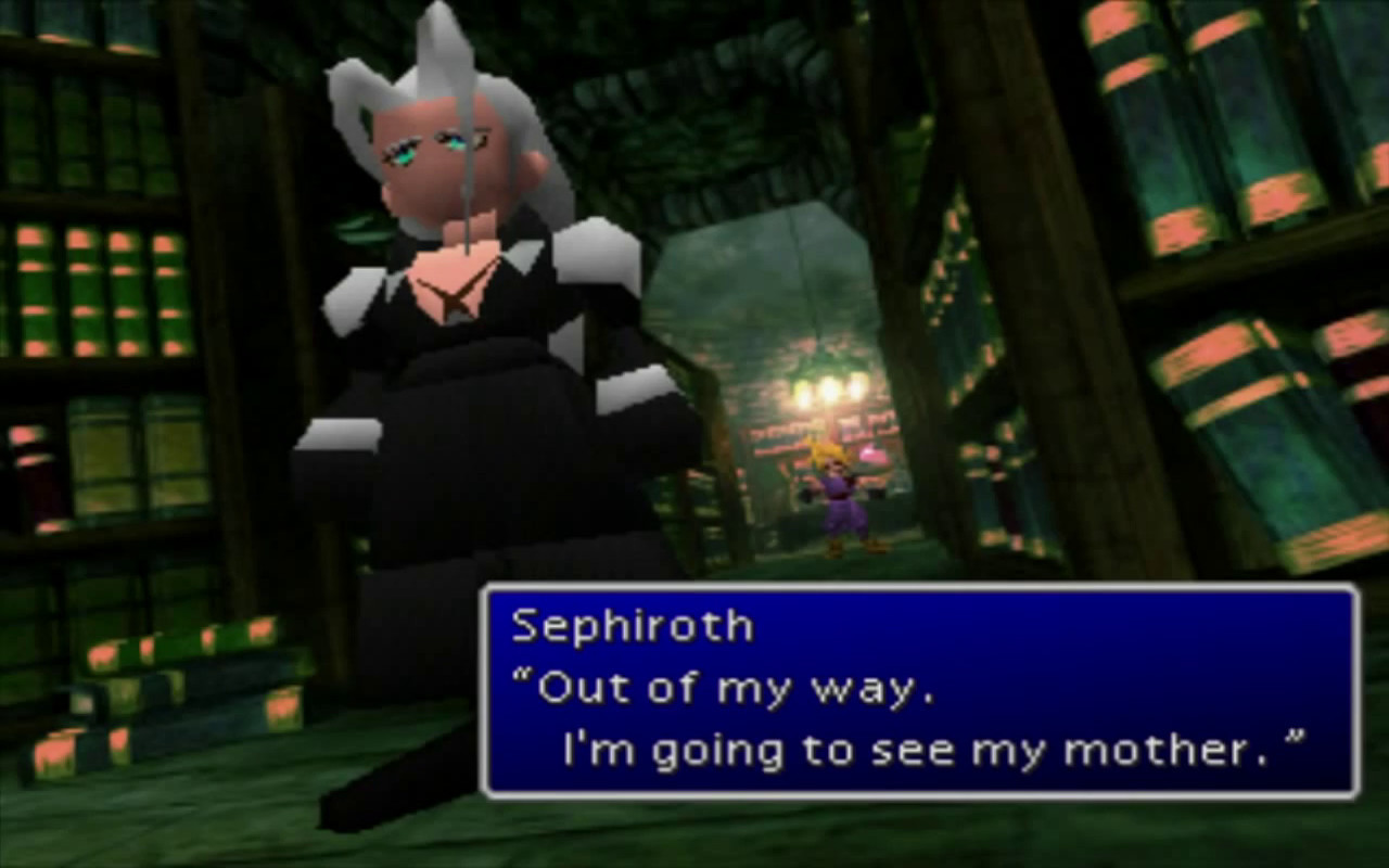 Aerith è uno dei primissimi personaggi che si unisce al gruppo, coinvolgendoci nella storia delle sue misteriose origini. La sua personalità empatica e benevola lascia inevitabilmente un segno sugli altri personaggi, che le si affezionano per vari motivi. Ecco perché la sua morte è un momento triste per tutti, e per Cloud è un evento tragicamente importante per lo sviluppo del suo personaggio. Ma soprattutto è forse uno dei momenti in cui il giocatore stesso si sente maggiormente vicino al protagonista principale. Sephiroth ha ucciso un personaggio che abbiamo passato tante ore a conoscere e sviluppare, specialmente dopo la sessione nel Tempio degli Antichi. Egli è sempre una minaccia per il pianeta, ma da quel momento sentiamo in tutto il suo vigore che la battaglia contro di lui è diventata anche una questione personale, non solo per Cloud.