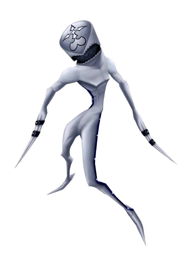 L’Heartless è la prima tipologia di minaccia che Sora si ritrova ad affrontare. Un Heartless è un’entità che viene generata in ogni luogo in cui l’Oscurità è ben manifestata, oppure quando il cuore di un individuo cede all’oscurità stessa. Esistono sostanzialmente tre tipi di Heartless: Puri, Emblema e Misti. I primi li abbiamo appena descritti, e il loro scopo è fondamentalmente quello di consumare altri cuori per farli cedere all’oscurità. Essendo nati dall’Oscurità, gli Heartless puri non posseggono ne coscienza, ne intelligenza, pertanto fanno esclusivamente affidamento al loro istinto per sottrarre altri cuori. I puri sono inoltre particolarmente attratti dai possessori del Keyblade, in quanto suddetto strumento ha la peculiare capacità di sbloccare i cuori. Questi Heartless possono anche essere invocati da una entità con un potere oscuro molto superiore, come Malefica o Ansem (Heartless di Xehanort). Quando vengono sconfitti da un possessore del Keyblade, gli Heartless si ricongiungono con il loro corpo e la loro anima(qualora il corpo, nel frattempo, non sia già diventato un Nessuno).