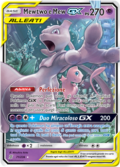 Abilità Perfezione: Questo Pokémon può usare gli attacchi di qualsiasi Pokémon-GX o Pokémon-EX nella tua panchina o nella tua pila degli scarti. Devi comunque avere l’Energia necessaria per usare quegli attacchi.