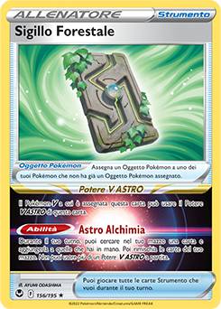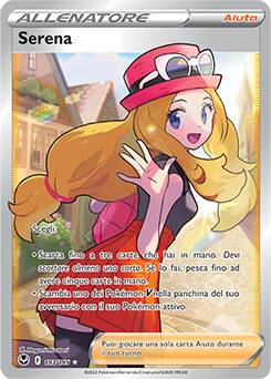 Chiudiamo la nostra carrellata di carte dell’espansione Tempesta Argentata con due Allenatori, uno Strumento e un Aiuto. Sigillo Forestale è una carta indubbiamente fondamentale in ogni deck perché permette di dotare un Pokémon-V di un Potere VASTRO anche qualora questi non ne abbia e sfruttandolo il giocatore può scegliere una qualunque carta dal mazzo e aggiungerla a quelle che ha in mano. Serena è dotata di una selezione, il primo Aiuto permette di scartare tre carte dalla mano per andarne a pescare altre dal deck, il secondo Aiuto permette di scambiare un Pokémon-V dell’avversario e renderlo attivo. Riteniamo entrambe le carte utilissime in un qualunque mazzo, con l’unica differenza che la prima necessita di avere all’interno del deck un Pokémon-V a cui attaccarla.