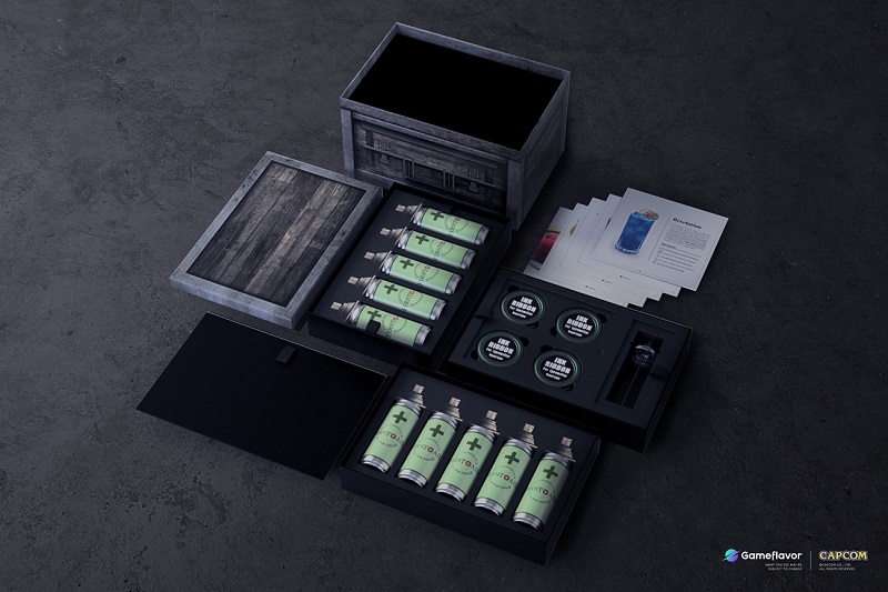- Dieci lattine da 330 ml di spray per il primo soccorso: Questi oggetti iconici della serie Resident Evil sono ora una bevanda deliziosa a base di tè verde con note di cetriolo e limone-menta, perfetta per soddisfare la sete degli appassionati.