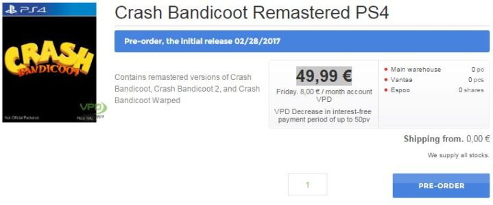 Come riportato da Gamezone.com, il titolo che raccoglierà i primi tre episodi della storica saga platform avrebbe una data d’uscita, dal momento che un rivenditore finlandese, VPD, segnala come release date il 28 Febbraio 2017, con un prezzo che si attesta sui 49,99€.