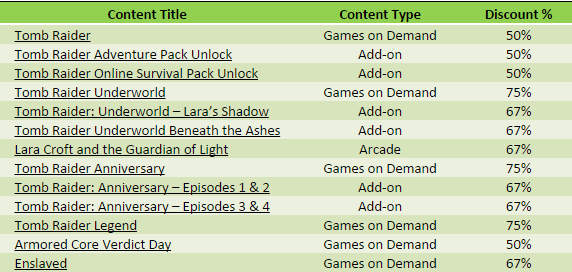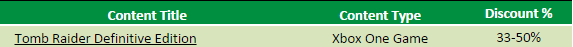 Come ogni settimana eccoci giunti all’appuntamento più atteso dagli abbonati Gold di Xbox Live: i Deals of the Week. Questa settimana si presentano davvero ricchi grazie a una selezione speciale di titoli dedicata a Tomb Raider per Xbox 360, mentre Tomb Raider: Definitive Edition per Xbox One è proposto al prezzo di € 20,00 con uno sconto, quindi, del 50%.