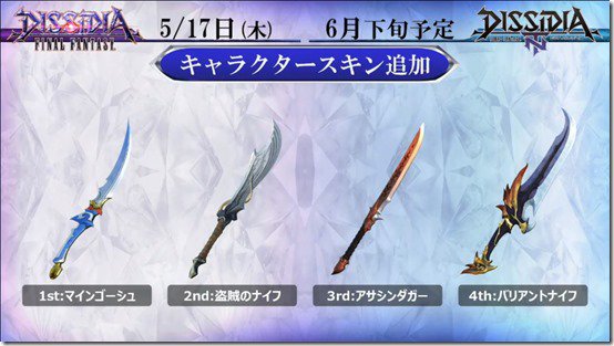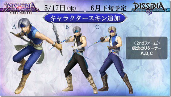 Il primo personaggio del season pass è stato Vayne Solidor, di Final fantasy XII, riadattato nel picchiaduro come monk. Rimangono altri 4 personaggi da annunciare, la prossima sarà una donna dalla prima metà dei capitoli numerati.