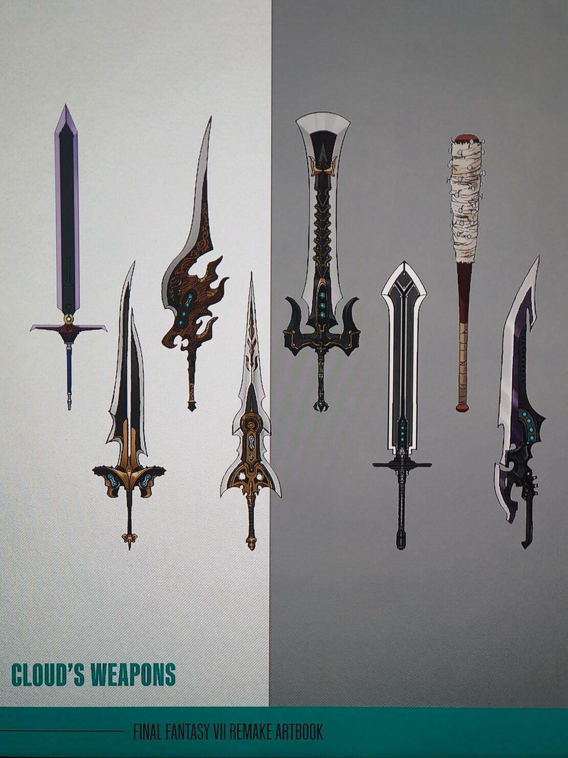 Osservando i disegni contenuti possiamo ovviamente notare che alcune di queste armi sono presenti nel gioco, ma altre non lo sono. Ora, si tratta di un artbook è vero, ma i design contenuti non sembrano dei bozzetti di lavorazione, dato che l’aspetto delle spade effettivamente presenti è chiaramente quello definitivo. È quindi più che plausibile credere che anche le armi inedite lo siano, e che saranno appunto presenti nei prossimi capitoli, anche considerando il buon numero di slot per le materia.