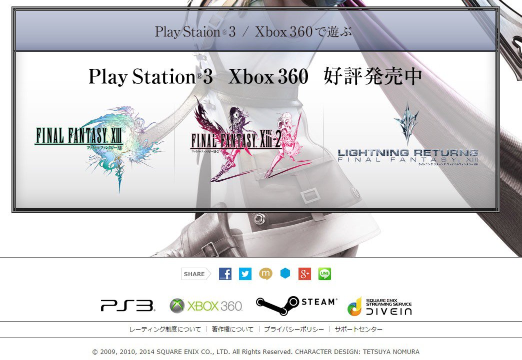 La pagina serve a rimarcare la possibilità di giocare a tutti i giochi della serie Final Fantasy XIII in streaming attraverso il proprio smartphone con il servizio Dive In lanciato da poco.