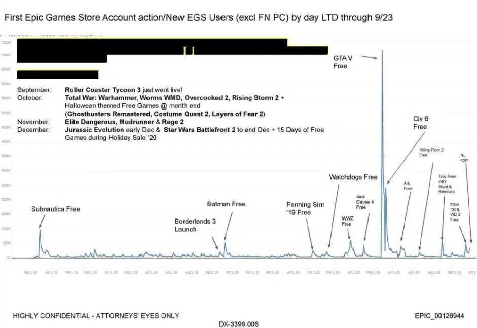Questa volta è stato il turno di un documento che ha mostrato il numero di nuovi utenti creati su Epic Games Store in concomitanza con i videogiochi dati gratuitamente, documento che ha ulteriormente confermato quanto, anche in questa occasione, GTA V abbia nuovamente macinato numeri da capogiro.