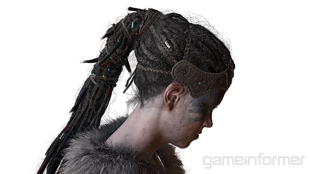 Anche per i capelli si è scelto un approccio storico, dato che la tribù era solita mettere del lime tra i capelli dandogli quell’aspetto di dreadlock. I capelli di Senua sono decorati da piccole pietre, che servono anche per dargli risalto data la sua figura oscura.