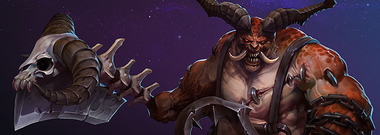 Nato negli Inferi Fiammeggianti e cucito insieme con parti di altri demoni, il Macellaio è un sadico che trae piacere nel torturare i suoi avversari. L’arrivo dell’Eterno Conflitto ha attirato questo spaventoso demone dalla Camera della Sofferenza fino al Nexus. Armato con una gigantesca ascia e una falce, il Macellaio si aggira sui campi di battaglia in cerca del prossimo cadavere da aggiungere alla propria collezione.