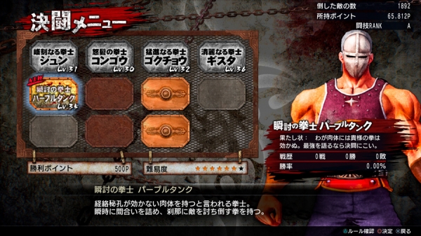 Quest’altra attrazione è situata nella zona centrale di Eden, ed è qui dove Kenshiro potrà conciare per le feste con le sue arti Hokuto Shinken nelle modalità “Combattimento tra prigionieri” e “Duello”. Sembra che in questa modalità sia possibile salire di categoria accumulando punti sconfiggendo nemici.