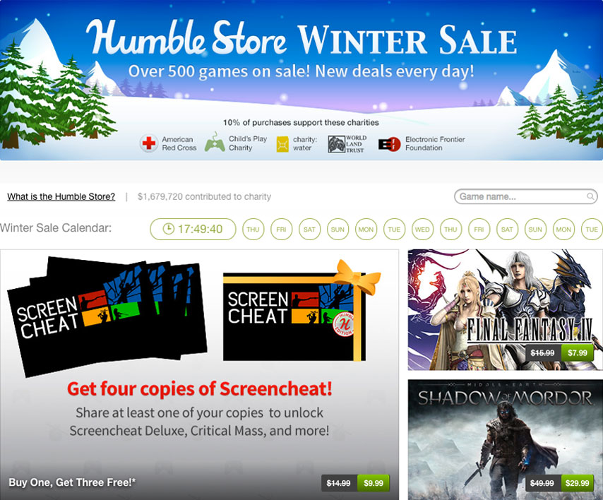 Dopo gli avvincenti sconti dello scorso Black Friday e i primi saldi stagionali, l’Humble Store dà il benvenuto ai suoi Winter Sale del 2014 scontando più di cinquecento giochi. Inoltre offrirà nuove offerte giornaliere che garantiranno ulteriori cali di prezzo.