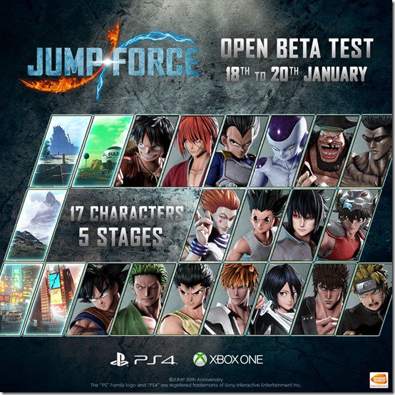 Nuovi dettagli in arrivo da Bandai Namco per l'open beta di Jump Force: quattro sessioni di gioco, cinque livelli e diciassette personaggi.
