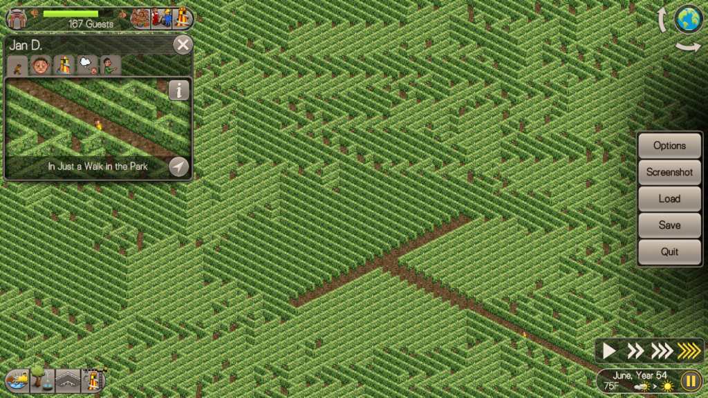 Rollercoaster Tycoon 2 è un gioco che permette di creare i propri parchi a tema per far divertire NPC. Almeno questo è lo scopo del gioco, ma RogueLeader23 non l’ha pensata così. Il modder ha voluto creare un parco con uno scopo leggermente diverso: un labirinto così complesso che sembra esser spuntato proprio dall’inferno. “Just a Walk in the Park” venne da lui pubblicato a Febbraio, intesa come vera e propria trappola per gli NPC.