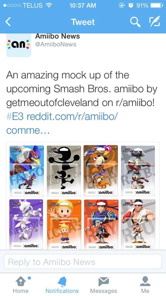 Gli amiibo in questione sono Falco, Mr. Game & Watch, Duo Duck Hunt, R.O.B., Mewtwo, Lucas, e infine quelli di Ryu e Roy che sono i nuovi personaggi del gioco rivelati stamattina.