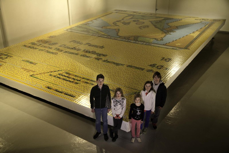 L’impresa è stata portata a termine da Quentin Devine, artista inglese, che insieme a Pokémon Company, è riuscito a realizzare una carta immensa, utilizzando ben 12,987 carte da gioco, unendole accuratamente, realizzando un mosaico enorme.