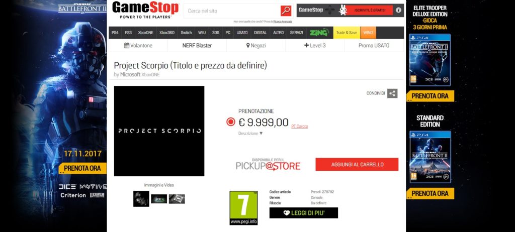 La nuova console di casa Microsoft non è ancora stata annunciata, ma Gamestop sembra voler anticipare i tempi. A partire da oggi sarà infatti possibile preordinare Project Scorpio dal sito ufficiale.