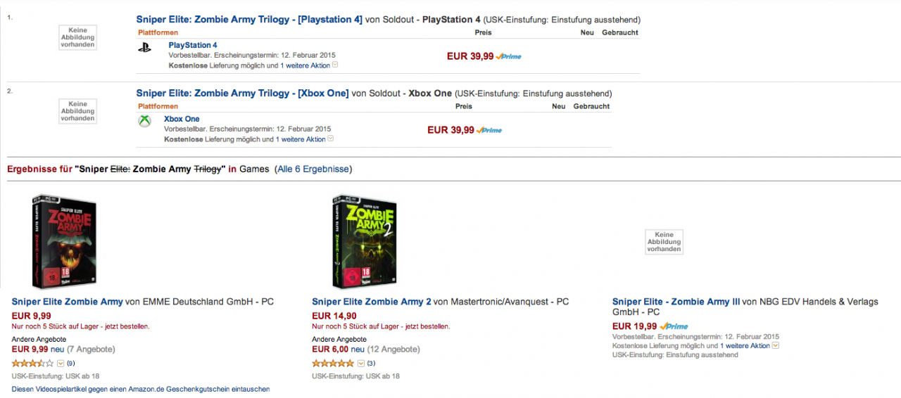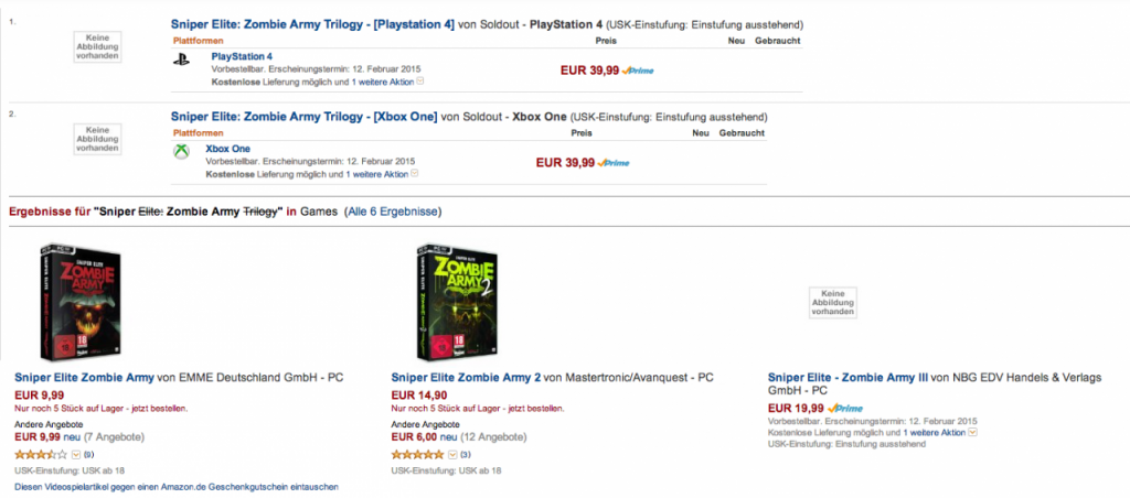 Amazon non è nuova a questo tipo di errori, già più volte grazie a loro si è scoperta l’esistenza di giochi di cui nulla si sapeva e probabilmente sarà così anche per Sniper Elite: Zombie Army Trilogy.