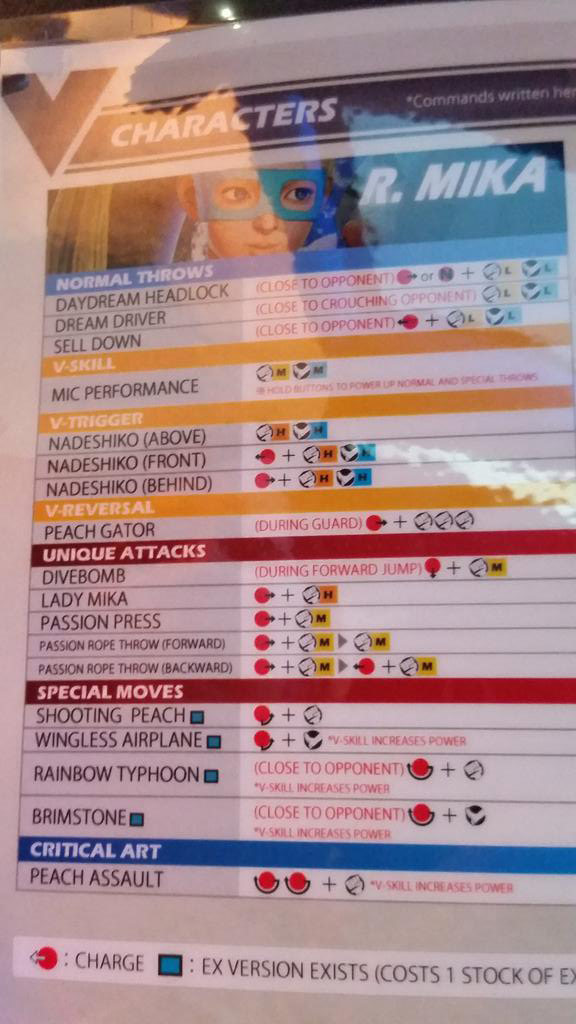 Analizzando la lista di mosse possiamo notare che non assomiglia per nulla al vecchio moveset presente in Street Fighter 3rd Strike (almeno per i nomi e l’esecuzione delle mosse), e che 3 delle sue 4 special sono presumibilmente delle command grab (in quanto vengono potenziate dalla sua V-Skill che dona un buff alle prese).