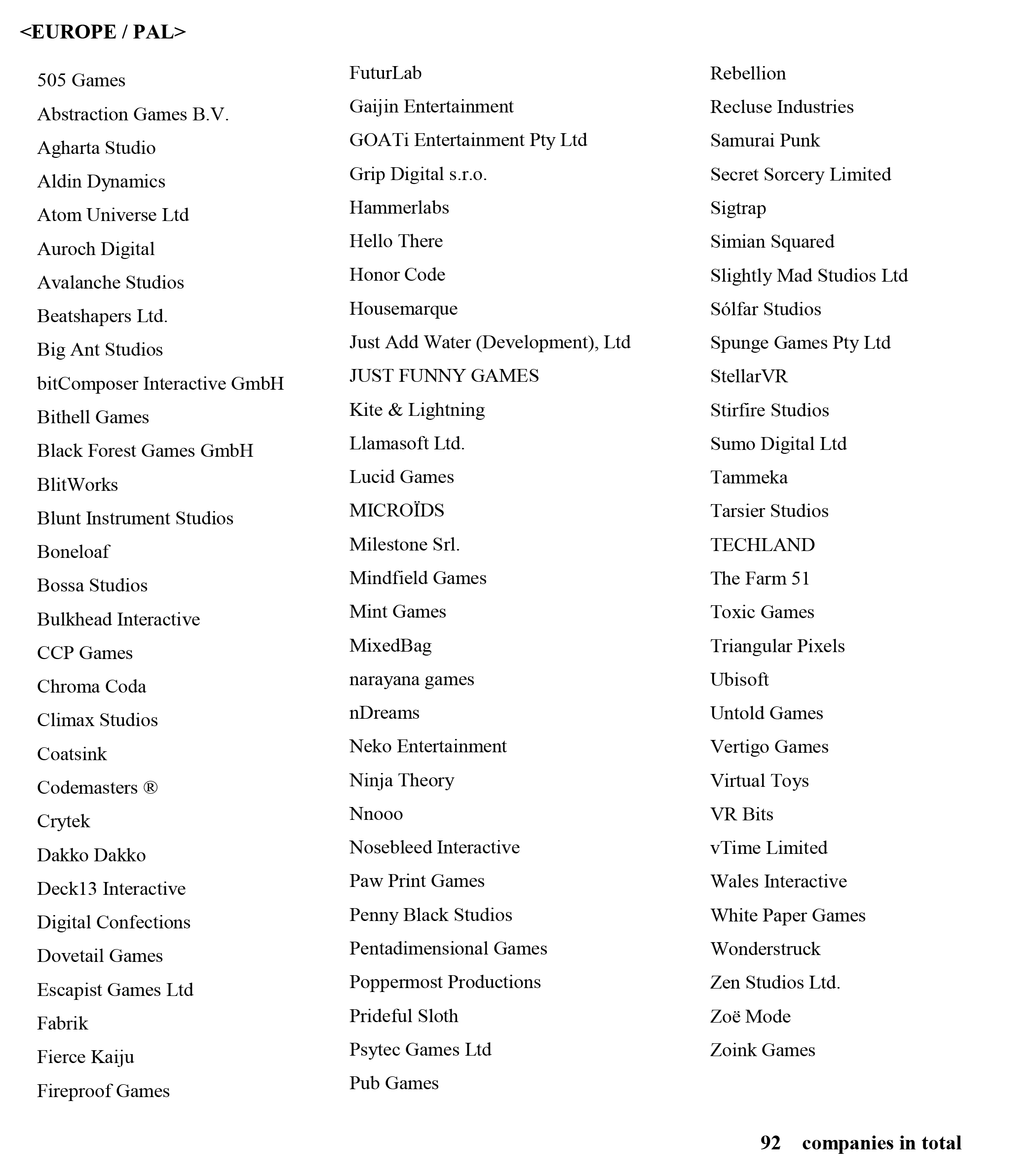 Dopo l’annuncio della data e il prezzo di commercializzazione del PlayStation VR, Sony ha diffuso una lista di circa 320 tra sviluppatori e publisher che starebbero già lavorando sul sistema di realtà virtuale.