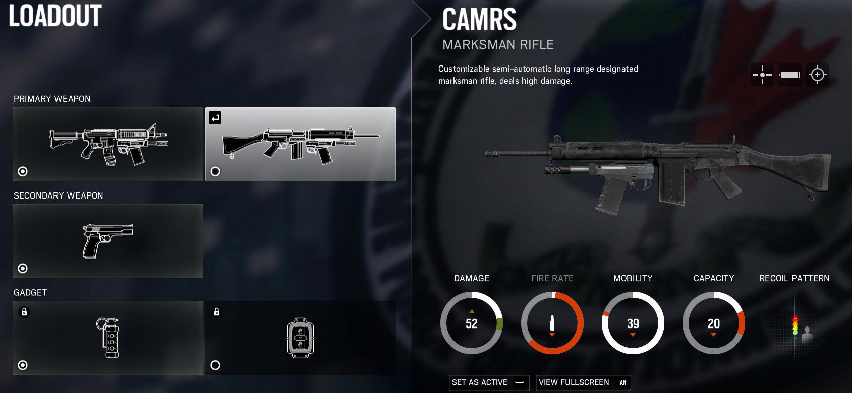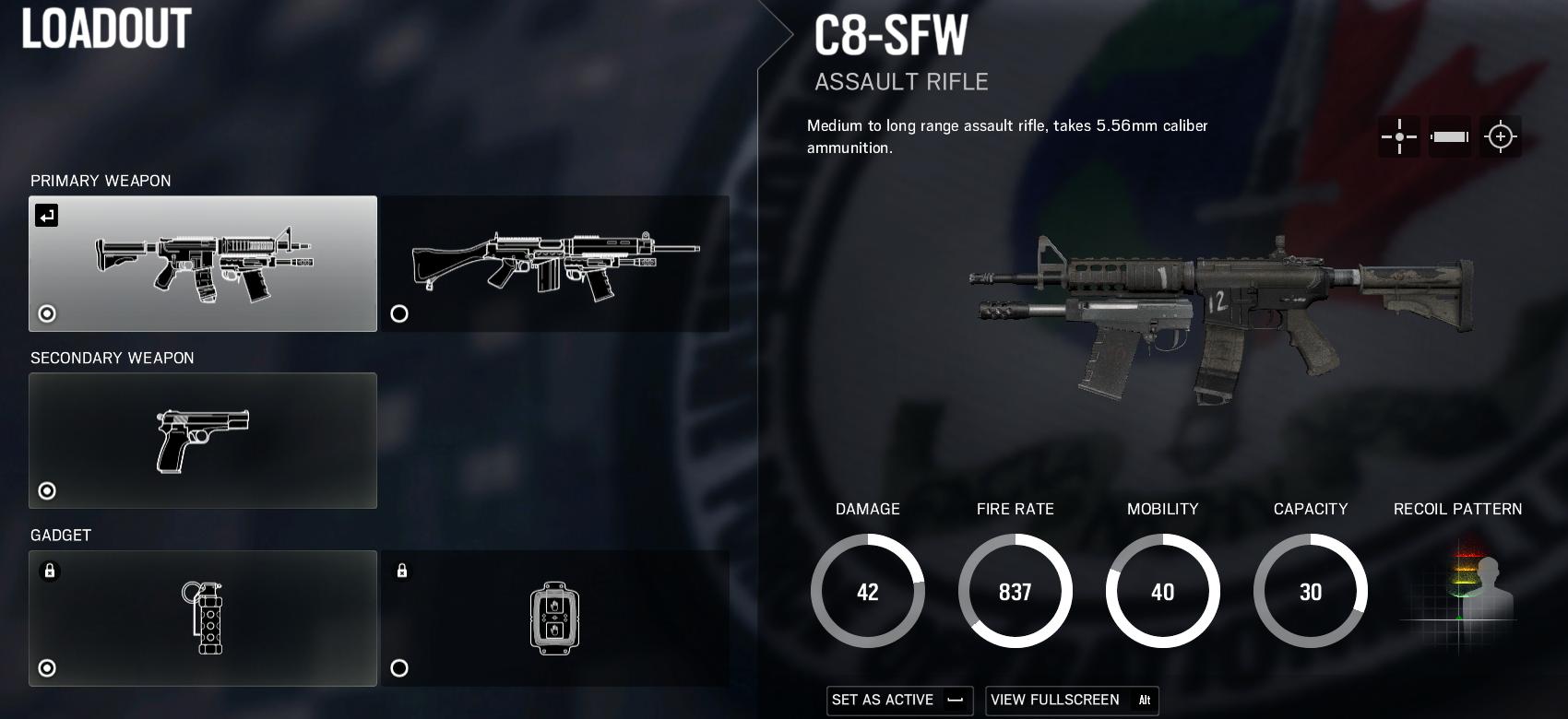 Le armi sono il fucile d’assalto C8-SFW, lo shotgun Super 90, il mitra 9mm C1 e il fucile di precisione CAMRS.