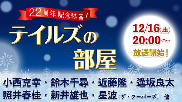 “Abbiamo deciso di trasmettere uno show speciale, dal titolo Tales Room, per commemorare i 22 anni della serie Tales Of. Daremo uno sguardo a questo 2017 con i fans e celebreremo con loro. Inoltre, forniremo alcune informazioni riguardo alcuni contenuti attualmente in sviluppo.“