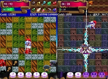 il giocatore manovra i personaggi intorno al bordo facendo ruotare l’intera area di gioco e la perforazione a distanza di gruppi di blocchi.