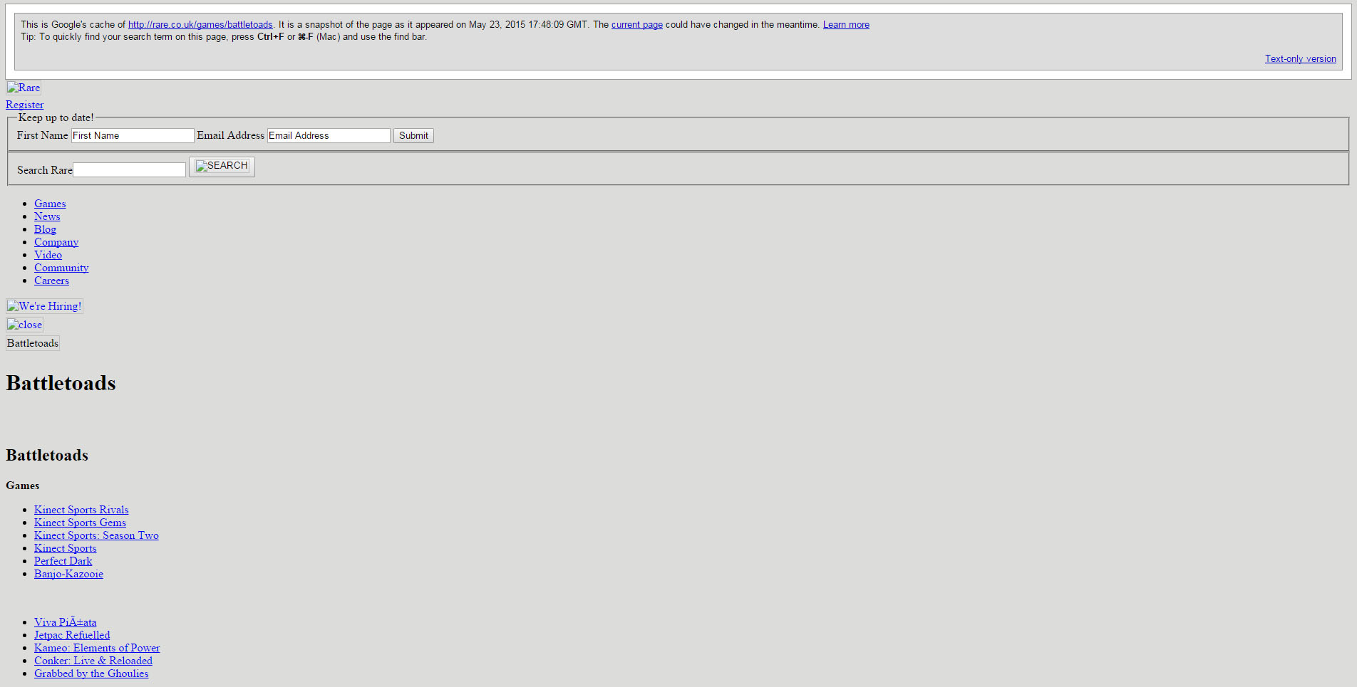 La pagina è stata inizialmente avvistata da un utente Twitter. Se cercate su Google “Battletoad website” troverete un link a rare.co.uk/games/battletoads intitolato “Battletoads – Games – Rare“. Sfortunatamente il link conduce unicamente alla homepage di Rare.