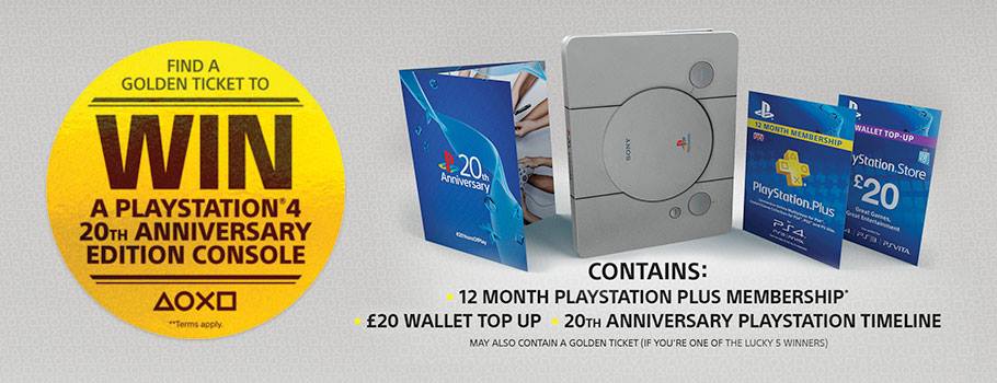 L’offerta, prevista il 23 ottobre nel Regno Unito, include la possibilità di partecipare all’estrazione di un modello speciale di PlayStation 4 20th Anniversary. Non si conoscono ancora il prezzo e la data di un’uscita nel resto d’Europa.