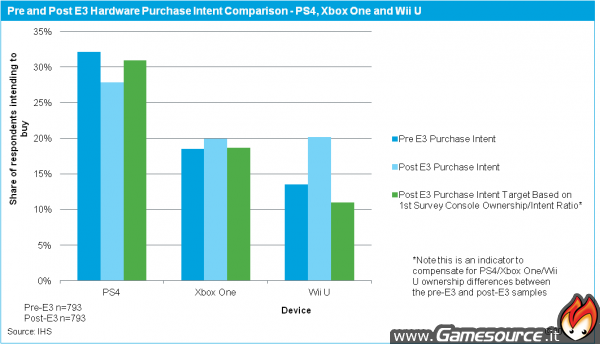 Wii U secondo dei dati raccolti dalla IHS in collaborazione con GamesIndustry.biz, dopo la presenza all’E3 con la presentazione di nuovi titoli per la console, ha dimostrato che l’interesse dei giocatori prossimi ad un acquisto è salito notevolmente a favore di Nintendo.